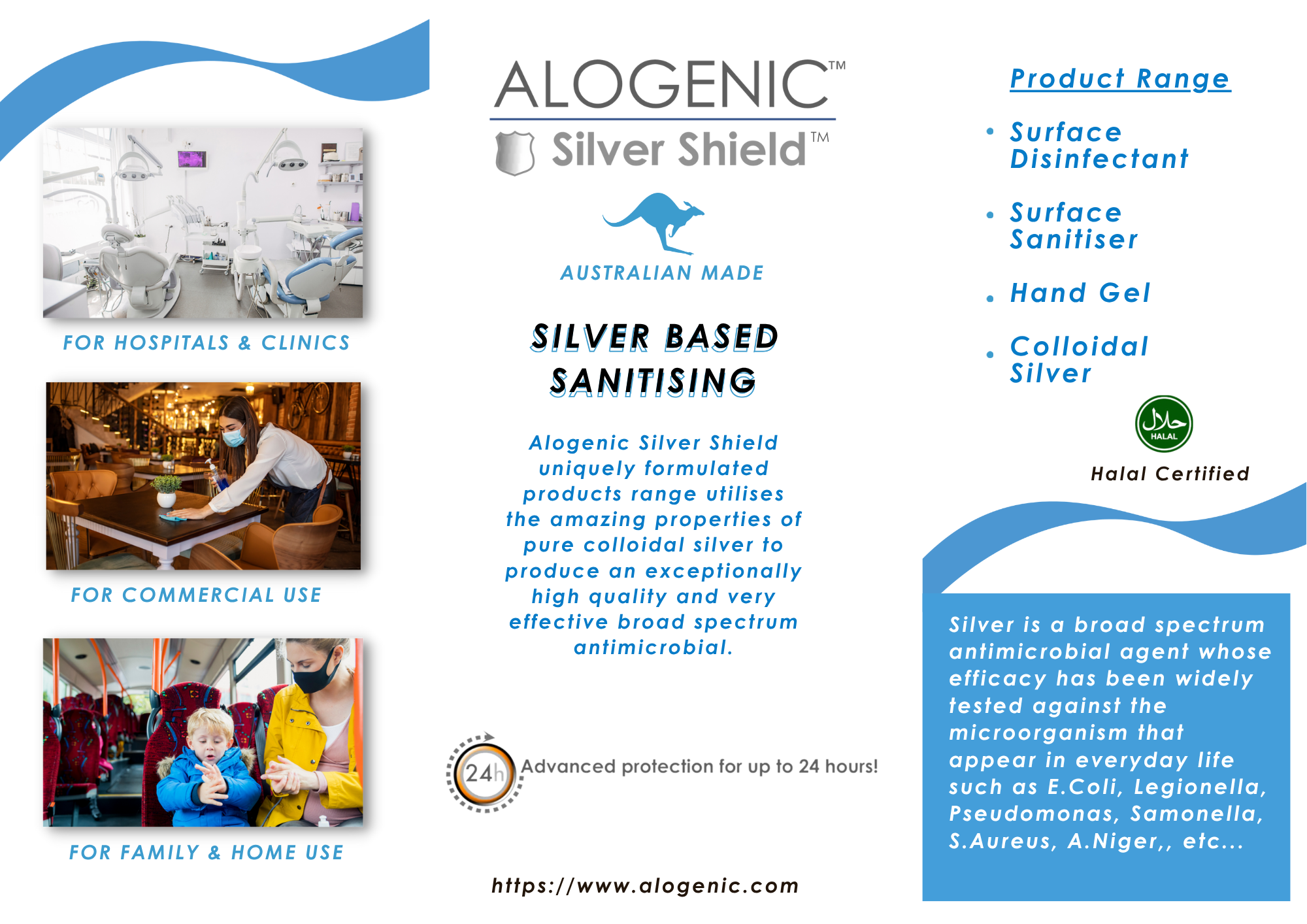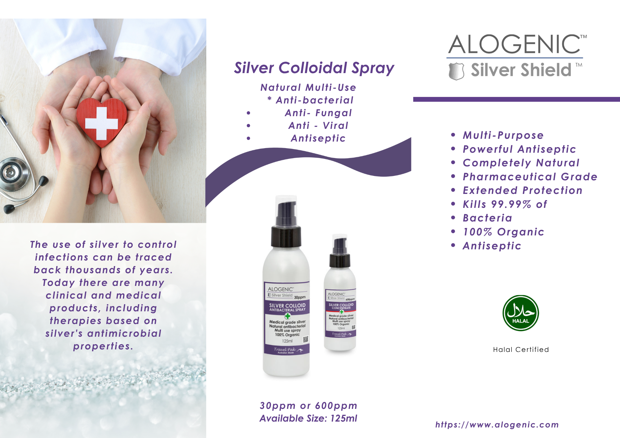 Unlike alcohol based products that have no protection once dried. Alogenic Silver Shield Colloidal Silver Spray provides advanced external protection after each application.