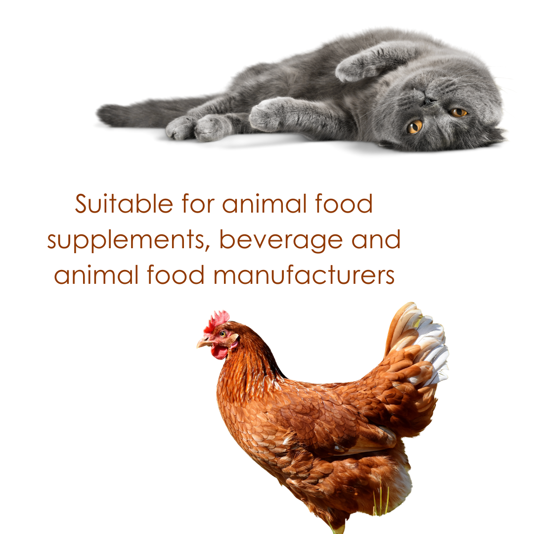 Suitable for animal food supplements, beverage and animal food manufacturers.